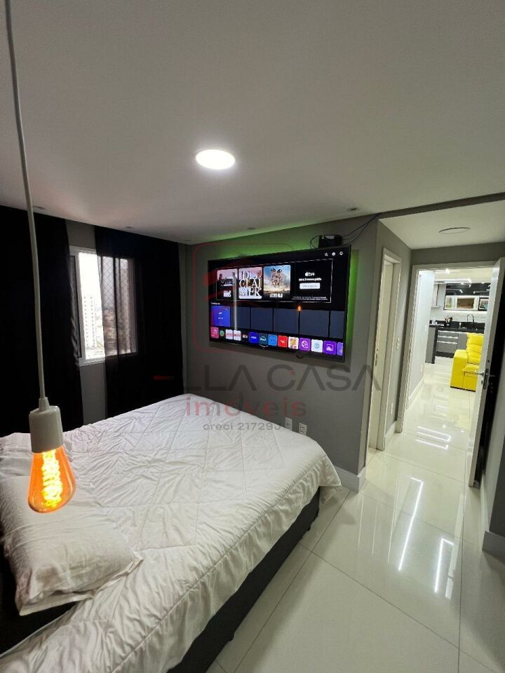 Lindo apartamento composto por 2 dormitórios, sendo 1 suíte com closet, 2 banheiros, sala 2 ambientes, varanda gourmet com churrasqueira a carvão, fechamento de sacada com vidro rebatível, 14º andar, vista livre, cozinha integrada com móveis planejados de fino acabamento, 2 vagas de garagem e lazer completo