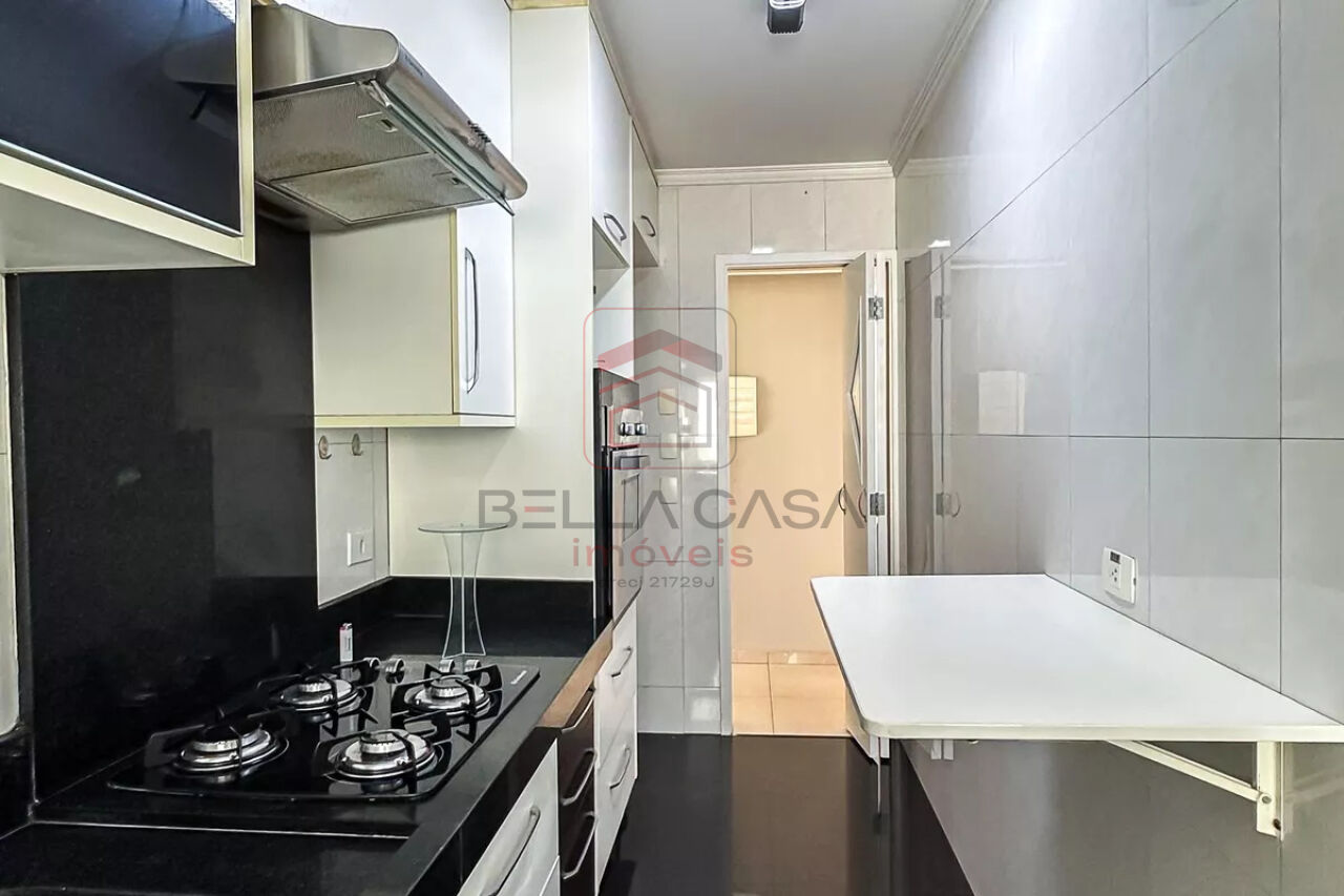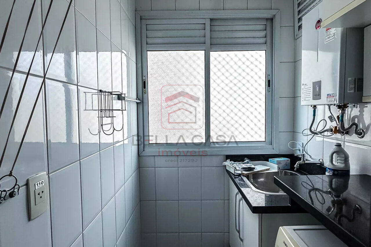 A cozinha conta com armários planejados, garantindo praticidade e organização no dia a dia, além de área de serviço independente. O imóvel dispõe ainda de 1 banheiro social completo, com box blindex e armário.