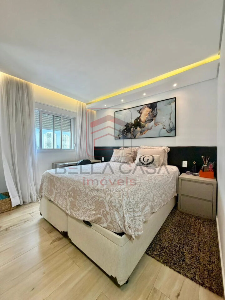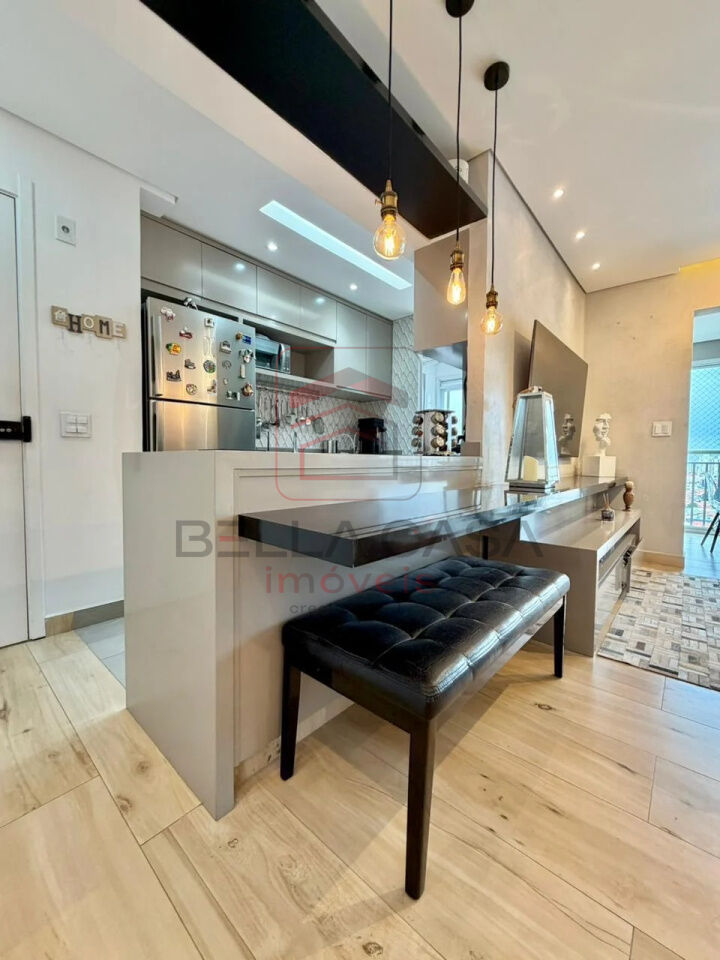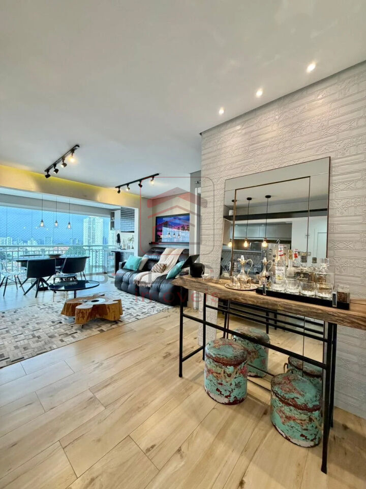 Imóvel com planta generosa onde o projeto foi ampliar a sala e retirar um dormitórios podendo reverter ao original de 3 quartos, 79 metros de área util, varanda gourmet nivelada, cozinha americana com moveis e eletrodomésticos de altíssima qualidade, 2 quartos sendo 1 suíte + 1 banheiro social, 2 vagas de garagem.