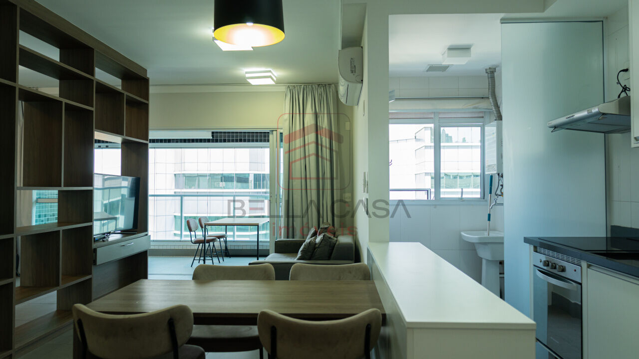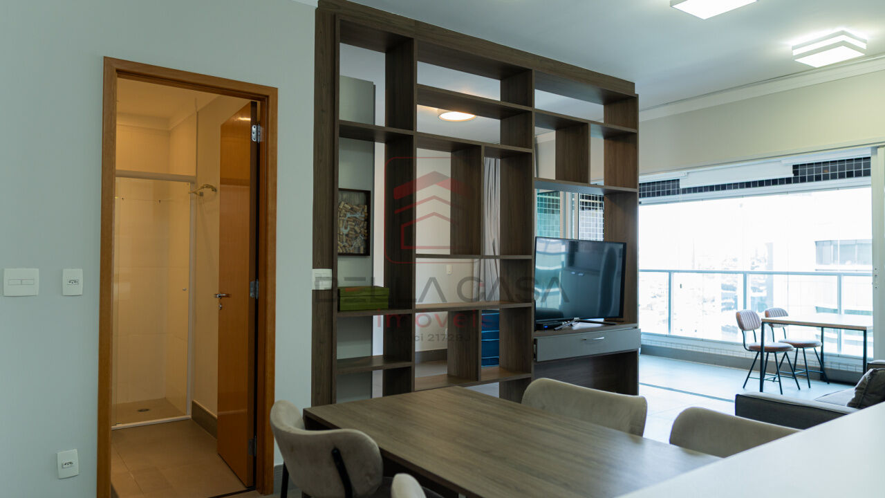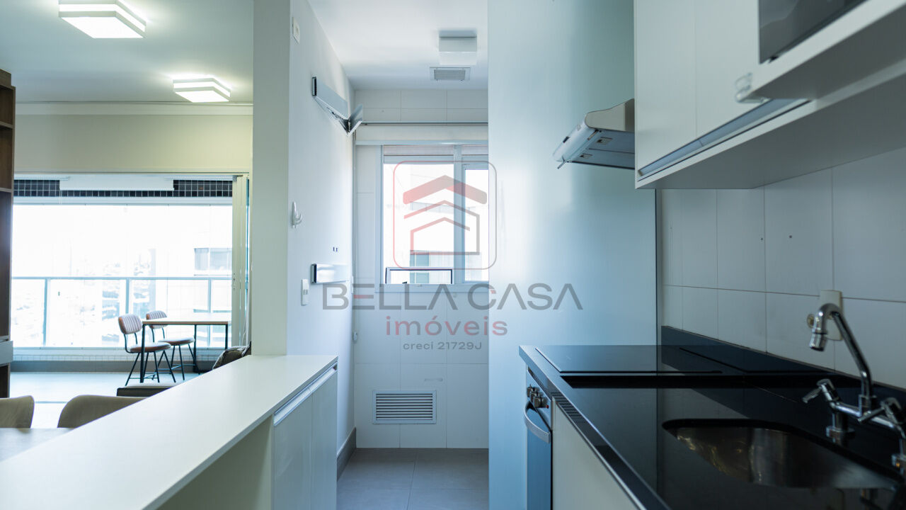 Apartamento de alto padrão com 55 m² de área útil, 1 suite, sala cozinha, banheiro, 2 vagas de garagem.