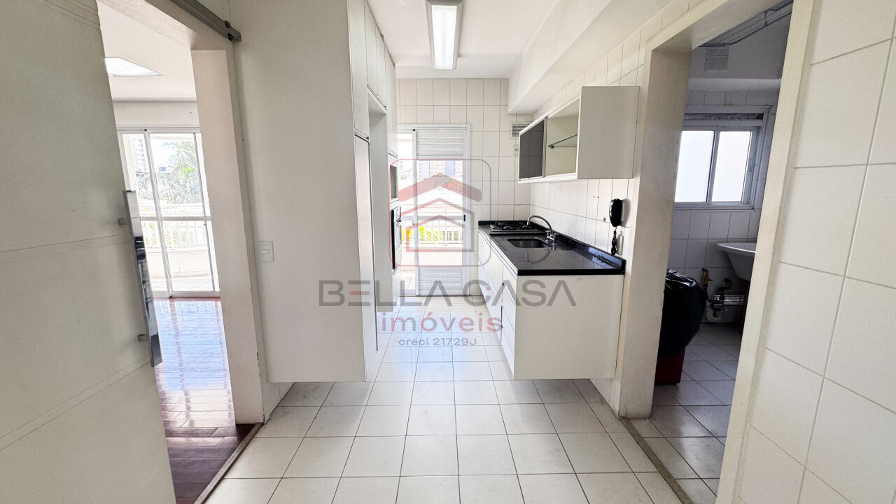 3 quartos sendo 1 suíte, 3 banheiros no total, cozinha toda equipada com fogão cooktop, forno embutido, lavanderia ampla com armário.