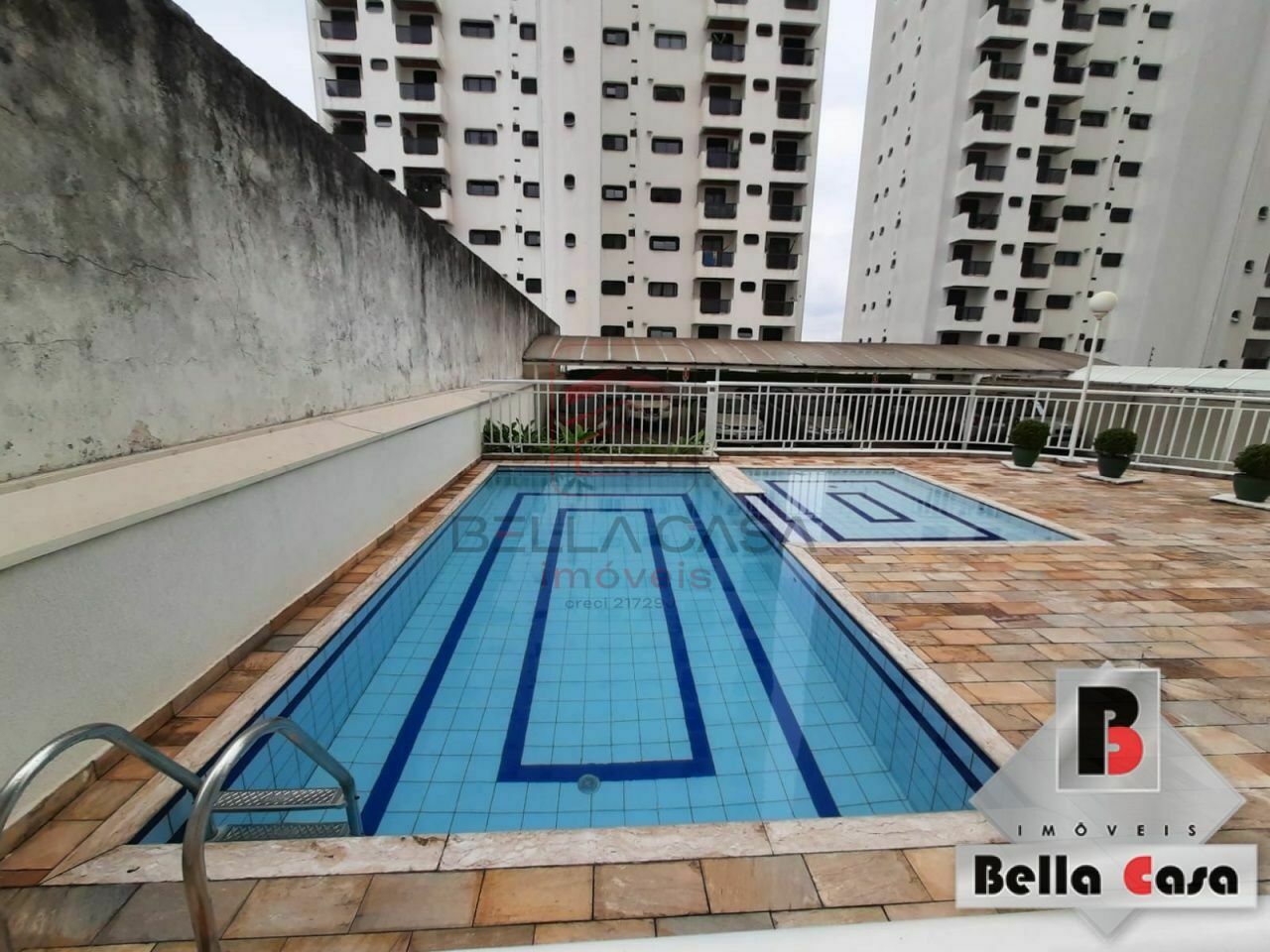 Lazer com piscina, churrasqueira, salão de festas.