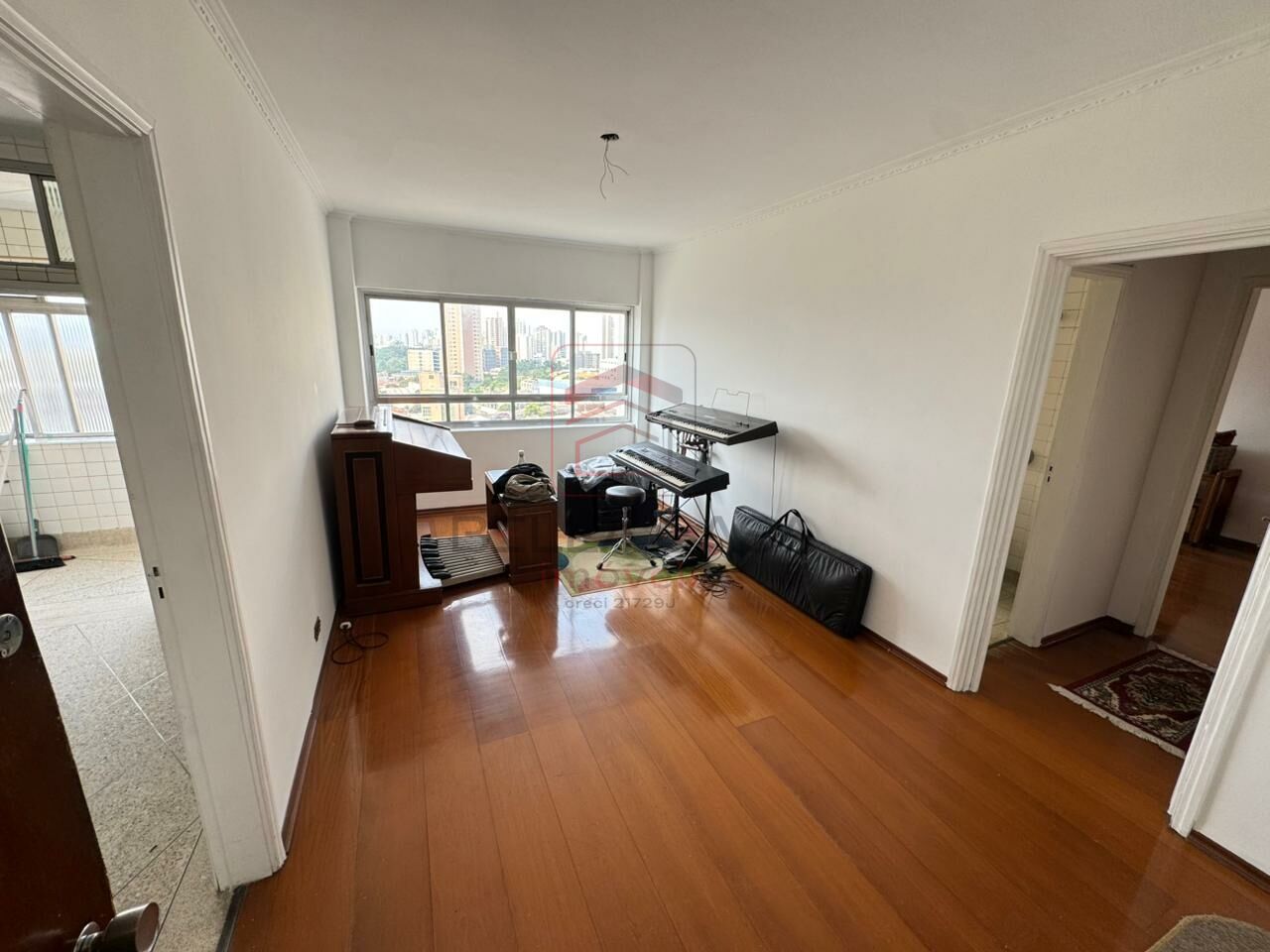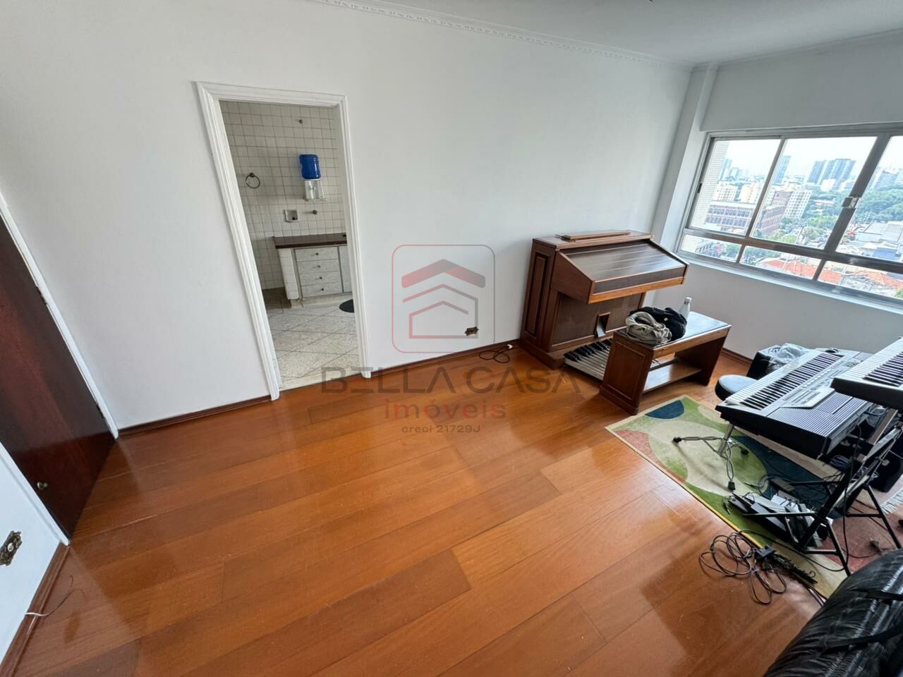 Sala ampla com boa iluminação e janela com vista livre