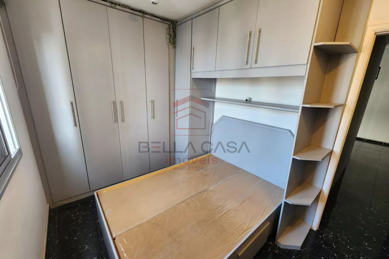 São 2 dormitórios, com armários embutidos no quarto e cozinha,2 banheiros box de vidro gabinetes.