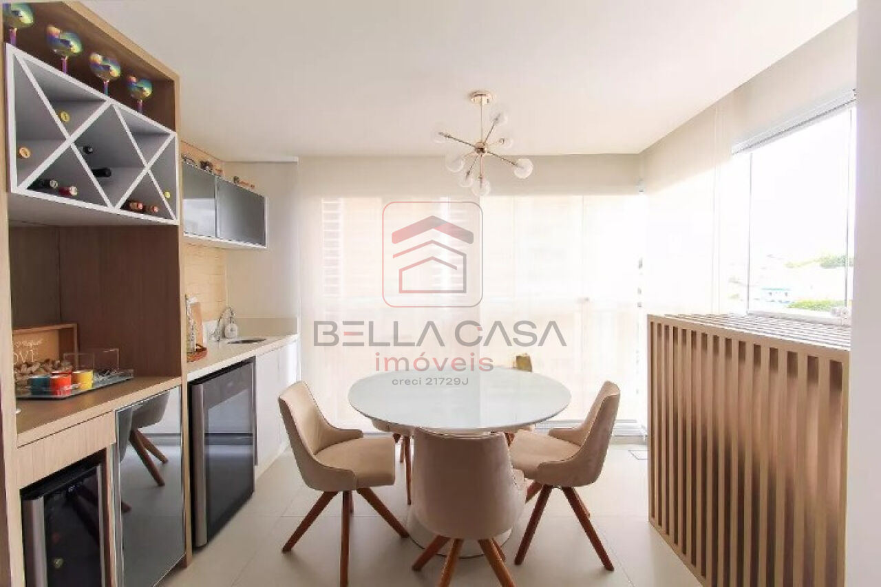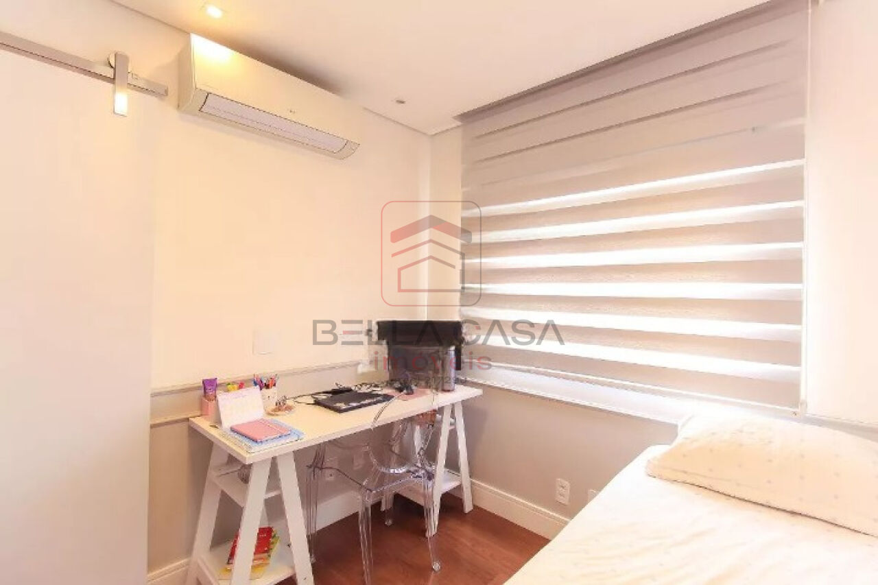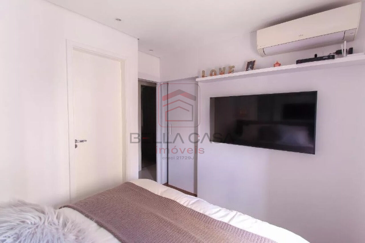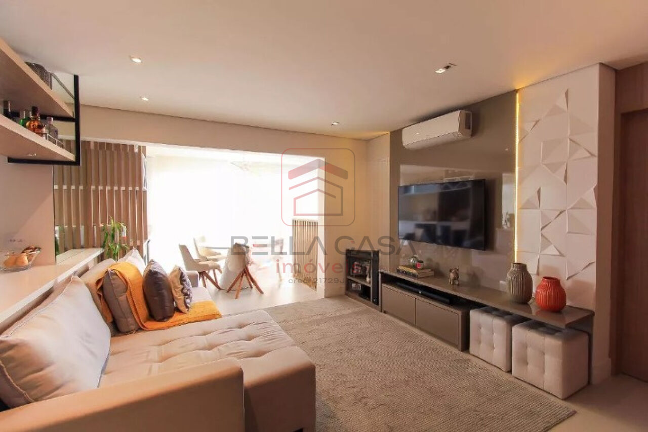 Apartamento novo, com todos os móveis planejados a partir de projeto feito com arquiteto. São dois quartos, sendo uma suíte, além de um quarto adicional utilizado para closet (não há foto no anúncio). São dois banheiros e um lavabo. Cozinha estilo americana. Sacada integrada. Ar condicionado nos quartos e na sala. Três vagas delimitadas na garagem.