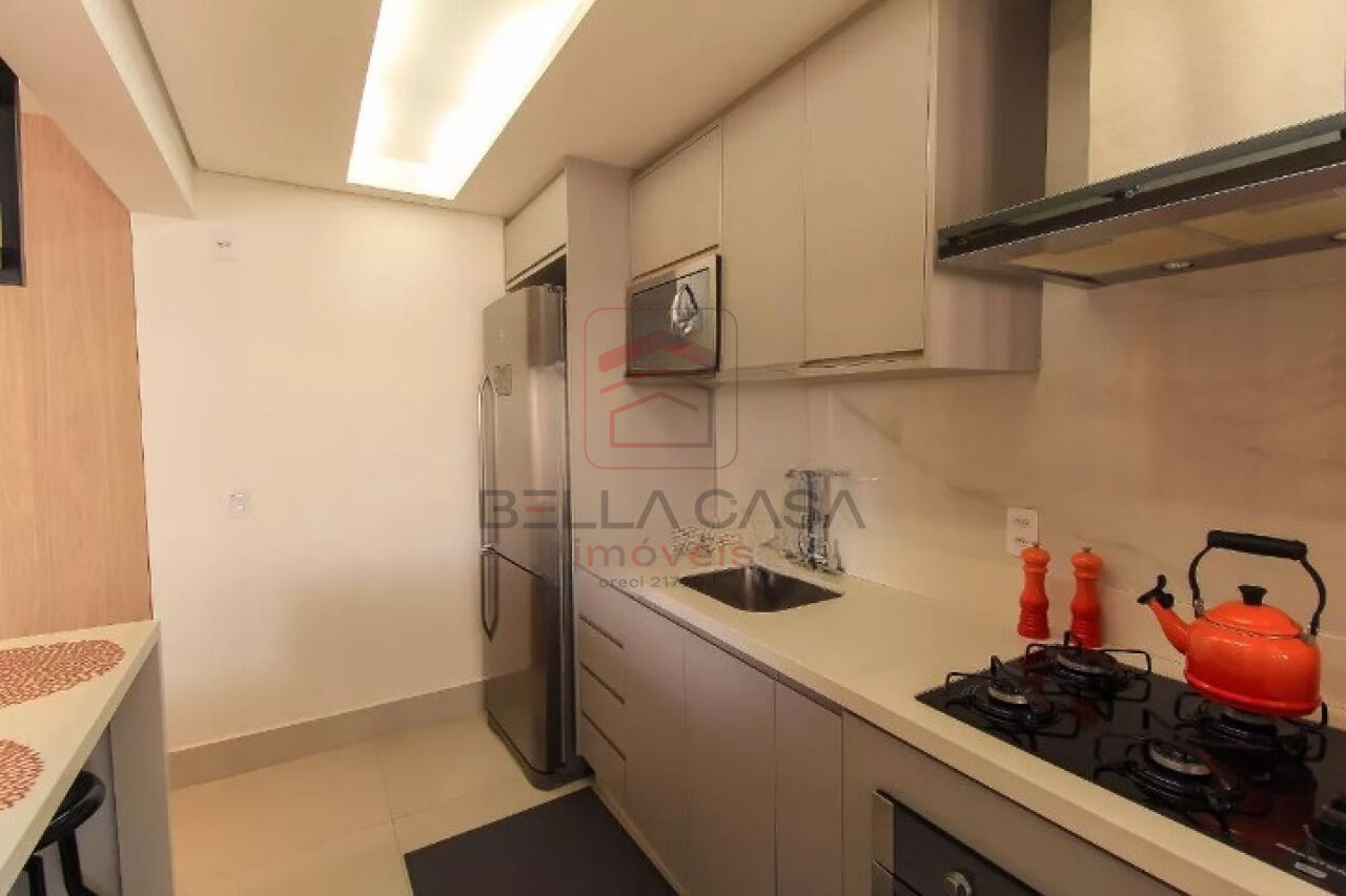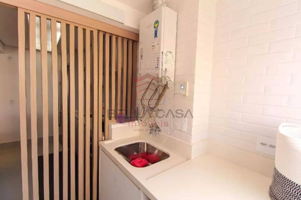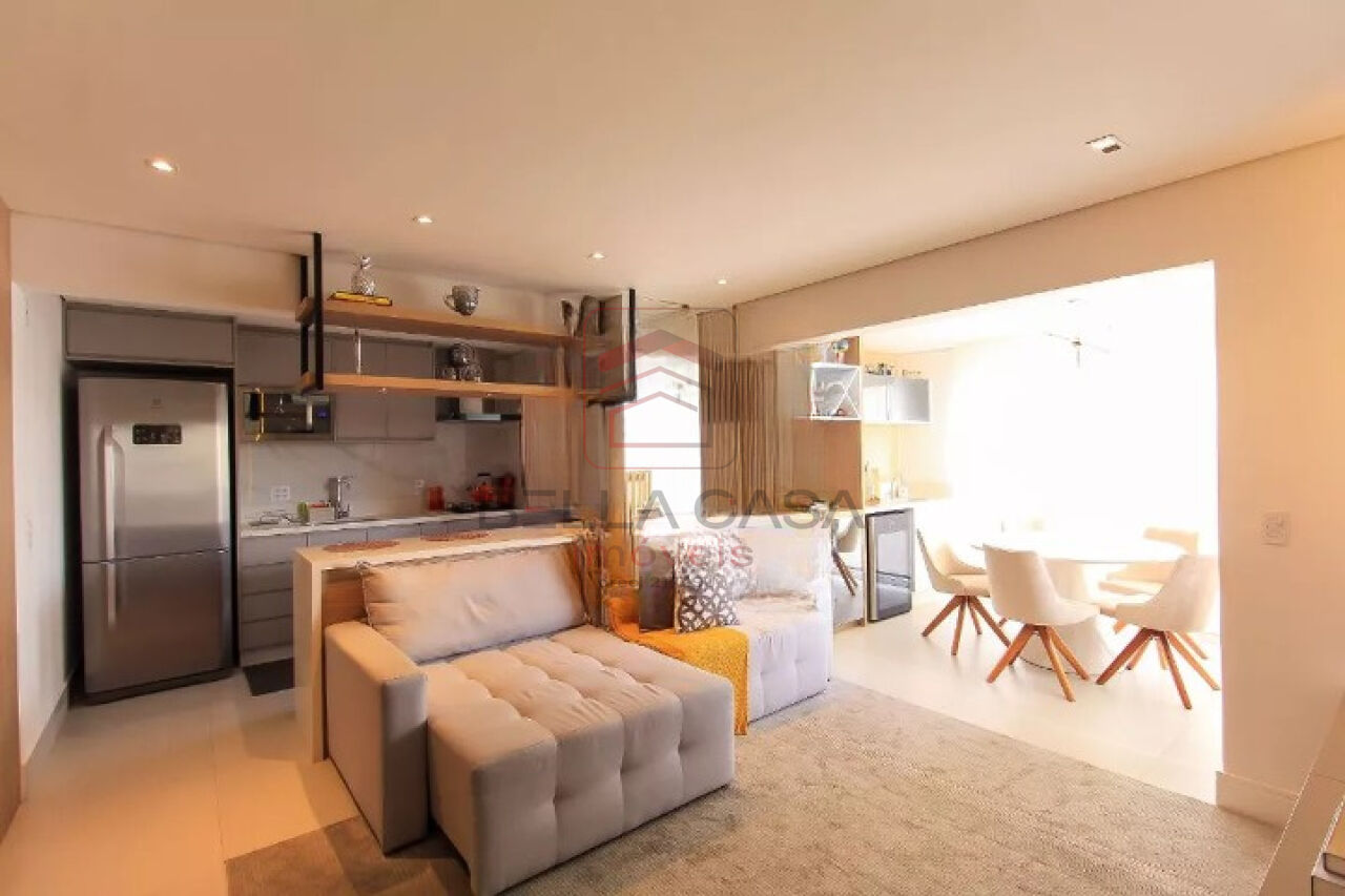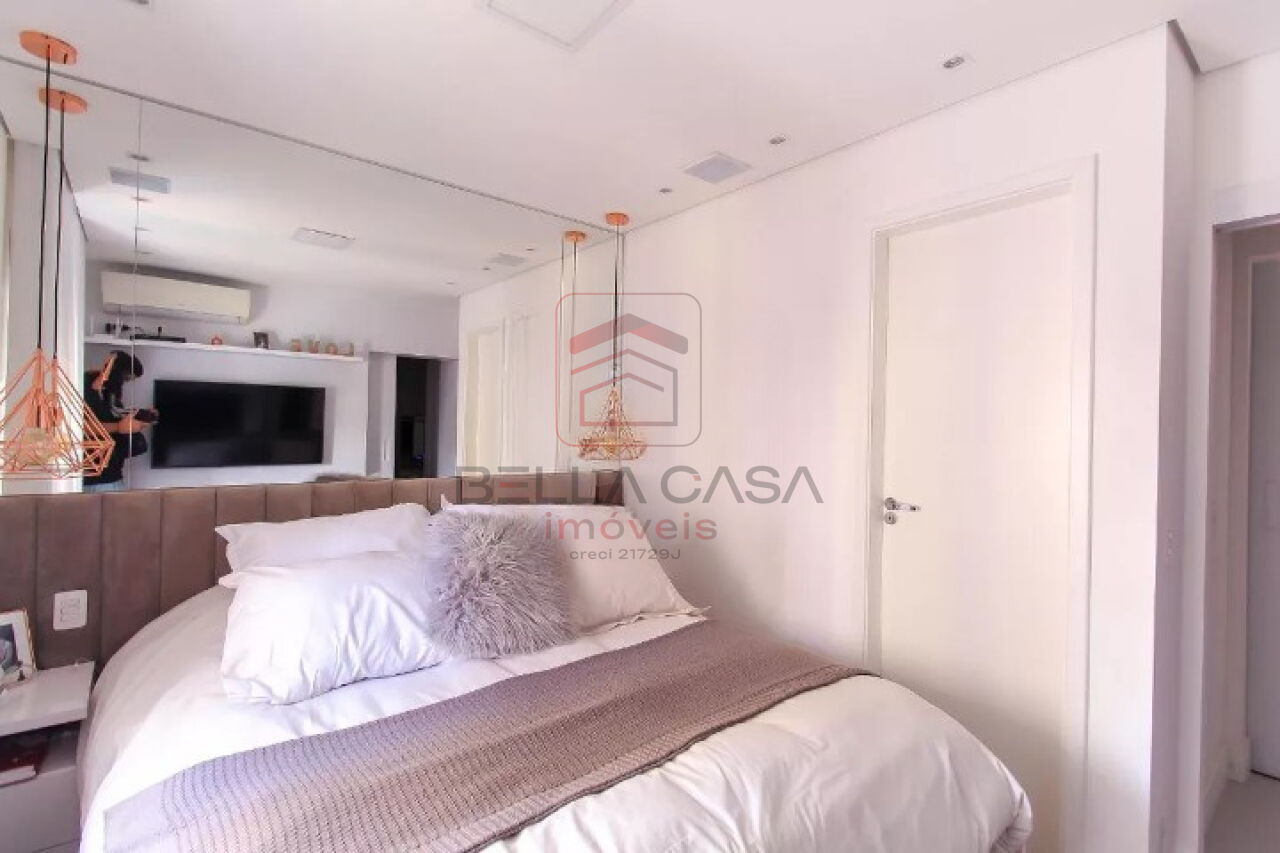Apartamento novo, com todos os móveis planejados a partir de projeto feito com arquiteto. São dois quartos, sendo uma suíte, além de um quarto adicional utilizado para closet (não há foto no anúncio). São dois banheiros e um lavabo. Cozinha estilo americana. Sacada integrada. Ar condicionado nos quartos e na sala. Três vagas delimitadas na garagem.