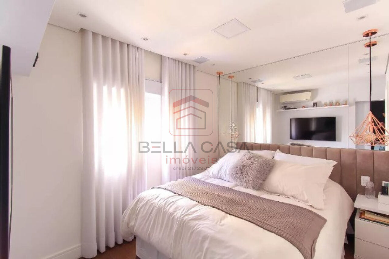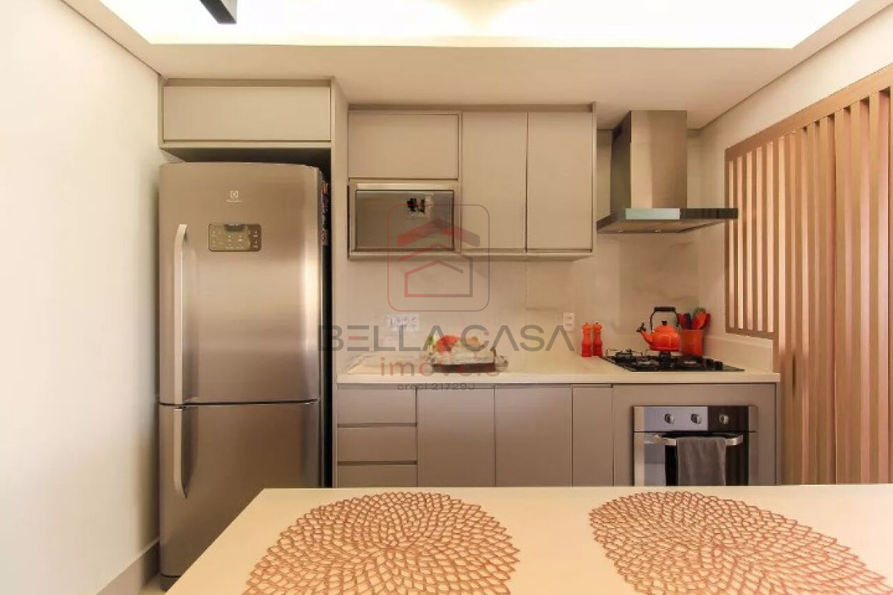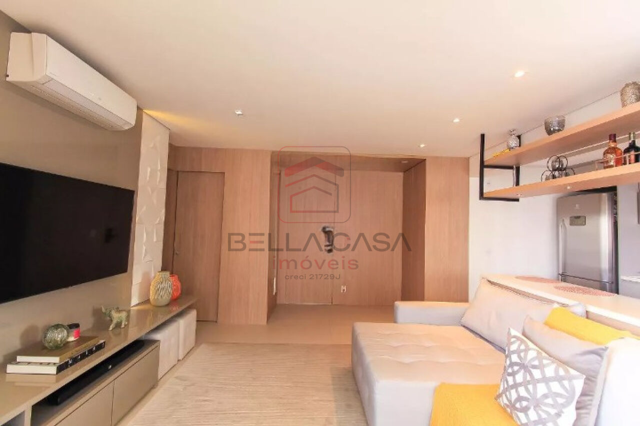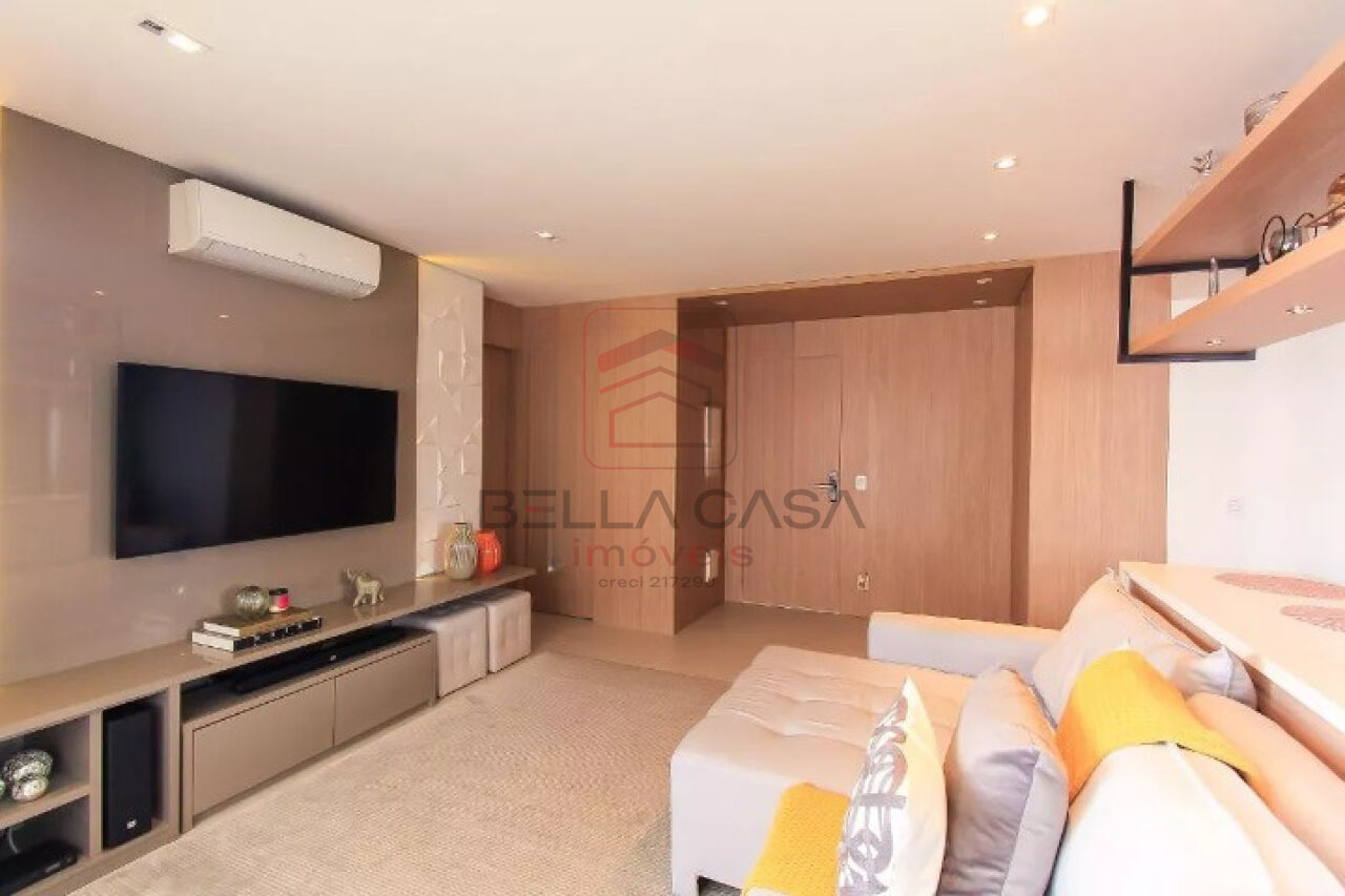 Apartamento novo, com todos os móveis planejados a partir de projeto feito com arquiteto. São dois quartos, sendo uma suíte, além de um quarto adicional utilizado para closet (não há foto no anúncio). São dois banheiros e um lavabo. Cozinha estilo americana. Sacada integrada. Ar condicionado nos quartos e na sala. Três vagas delimitadas na garagem.
