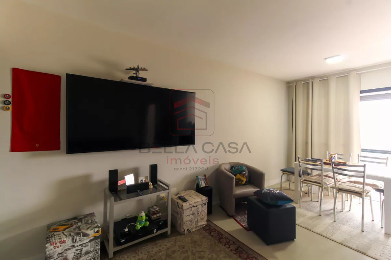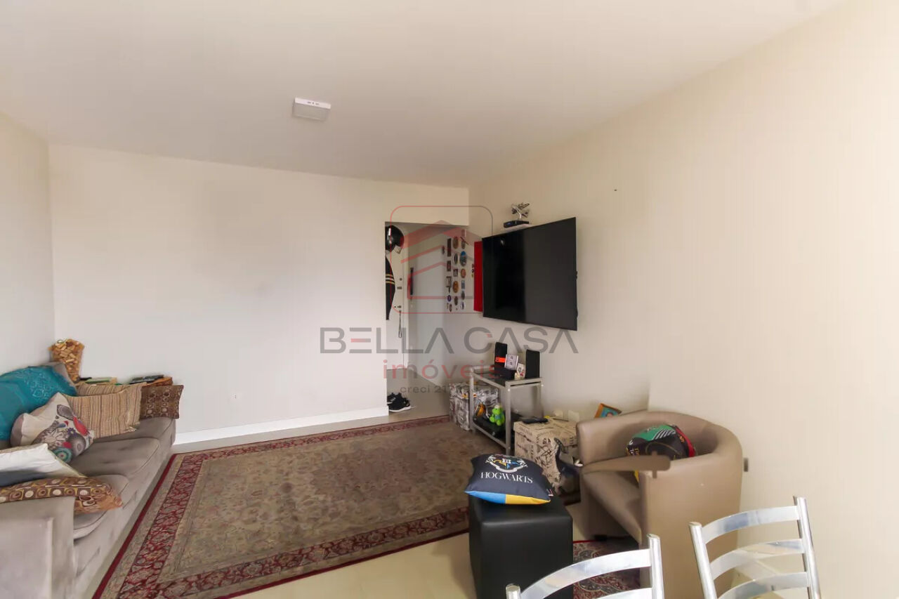 Sala (Tv e jantar) com tapetes e mesa expansível com 4 cadeiras suportando 10 quando expandida.