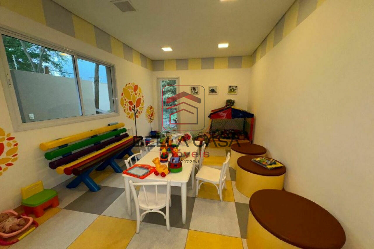 Lazer com piscina, churrasqueira, salão de festas, playground, salão de jogos, academia, sauna e brinquedoteca.