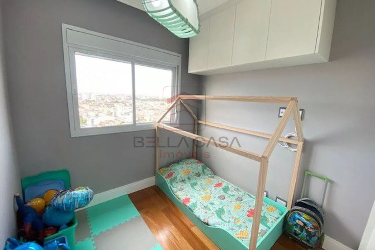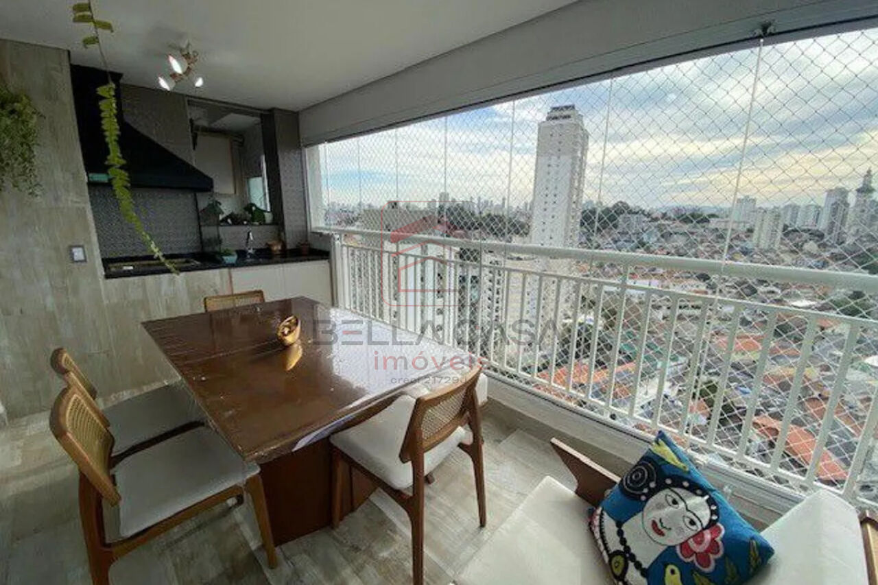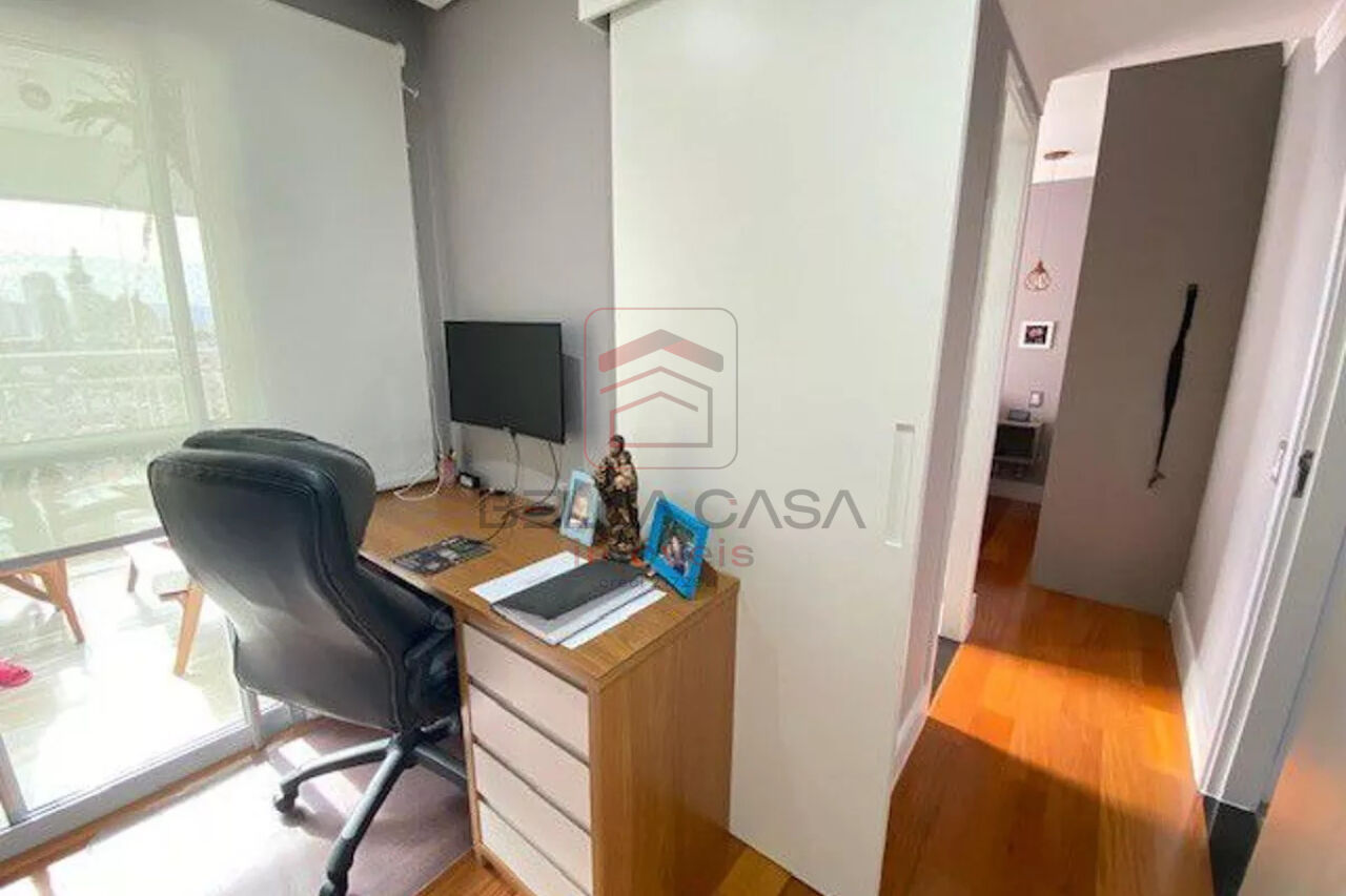 Com armarios embutidos, varanda gourmet com fechamento de vidro;