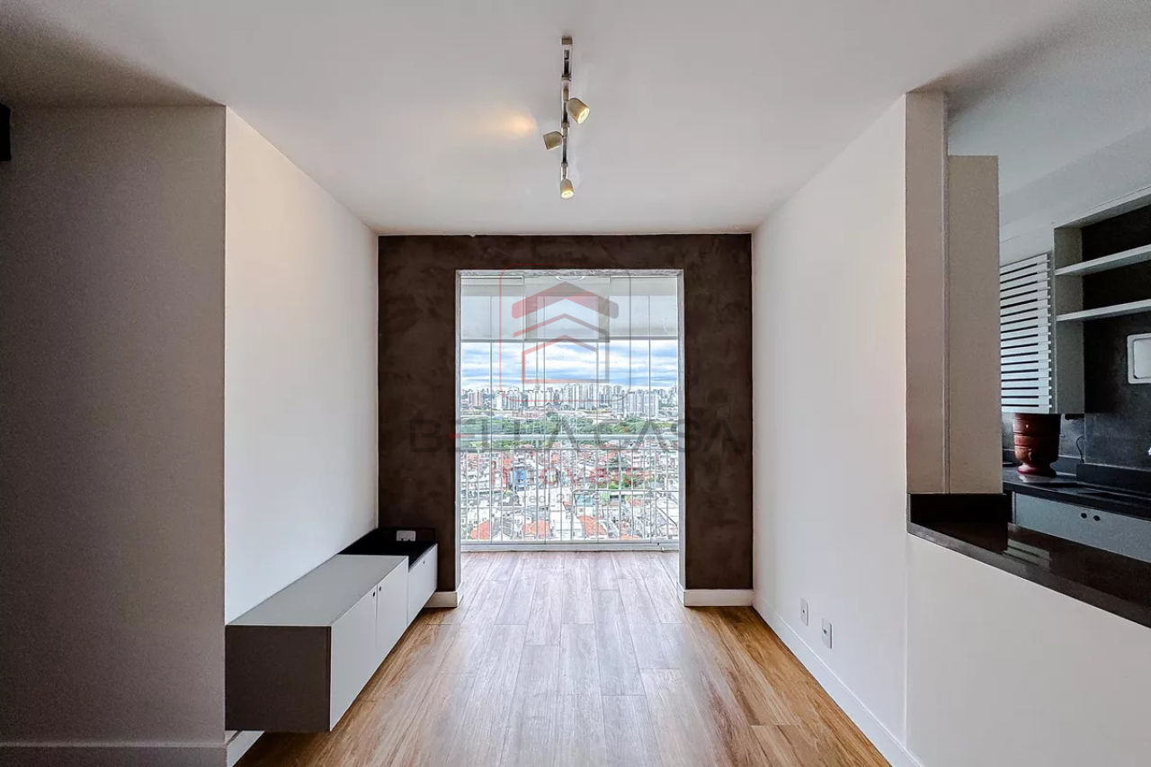 Apartamento de 45 metros quadrados, conta com dois quartos, proporcionando um ambiente acolhedor e funcional para casais ou pequenas famílias. A presença de uma varanda é um diferencial, permitindo momentos de relaxamento ao ar livre sem sair de casa.