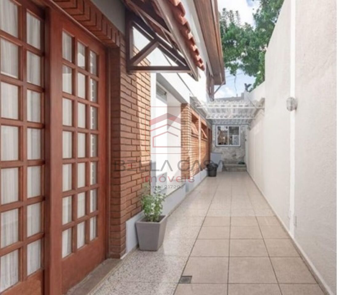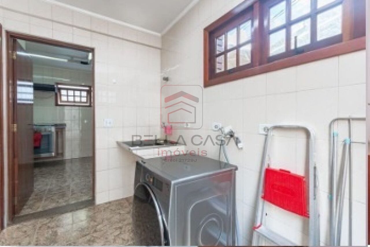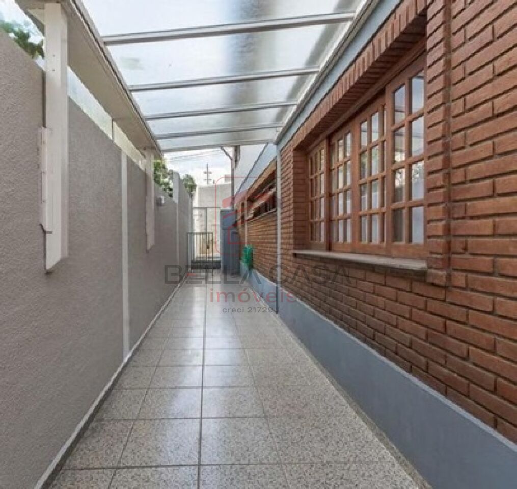 A cozinha possui acesso direto à lavanderia e suíte de empregada, além de ligação com dois corredores laterais cobertos em policarbonato, que conduzem ao quintal dos fundos.