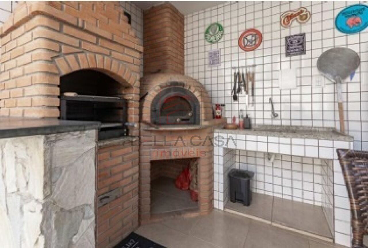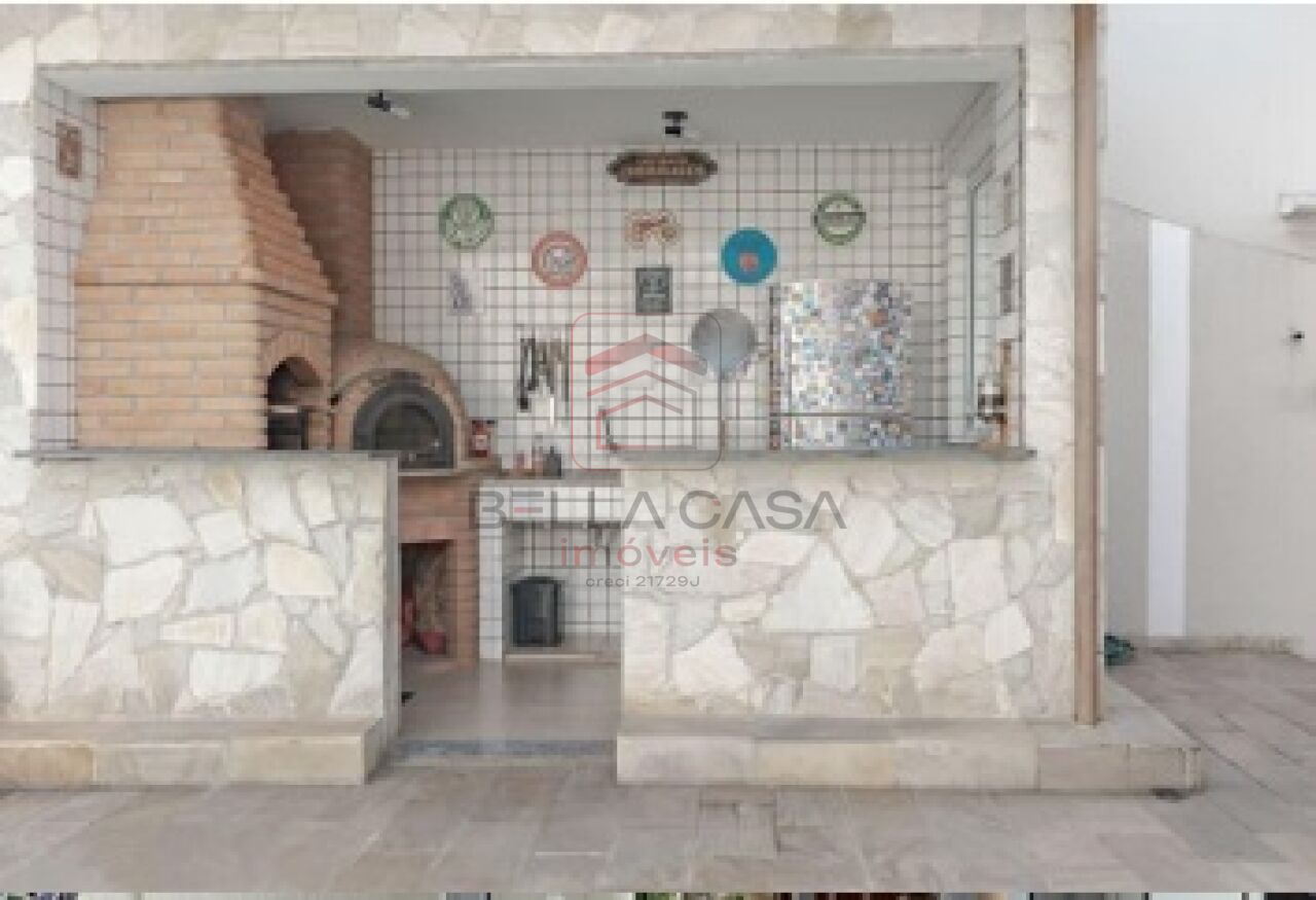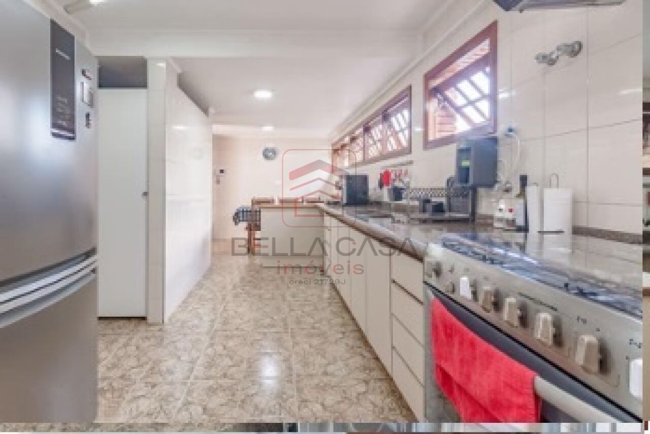 A casa conta com ampla sala com lareira, integrada a uma espaçosa copa-cozinha planejada, equipada com armários em toda a extensão, ilha central, espaço para mesa de 6 lugares, pia com duas cubas e despensa com prateleiras.