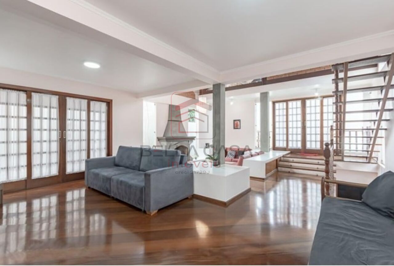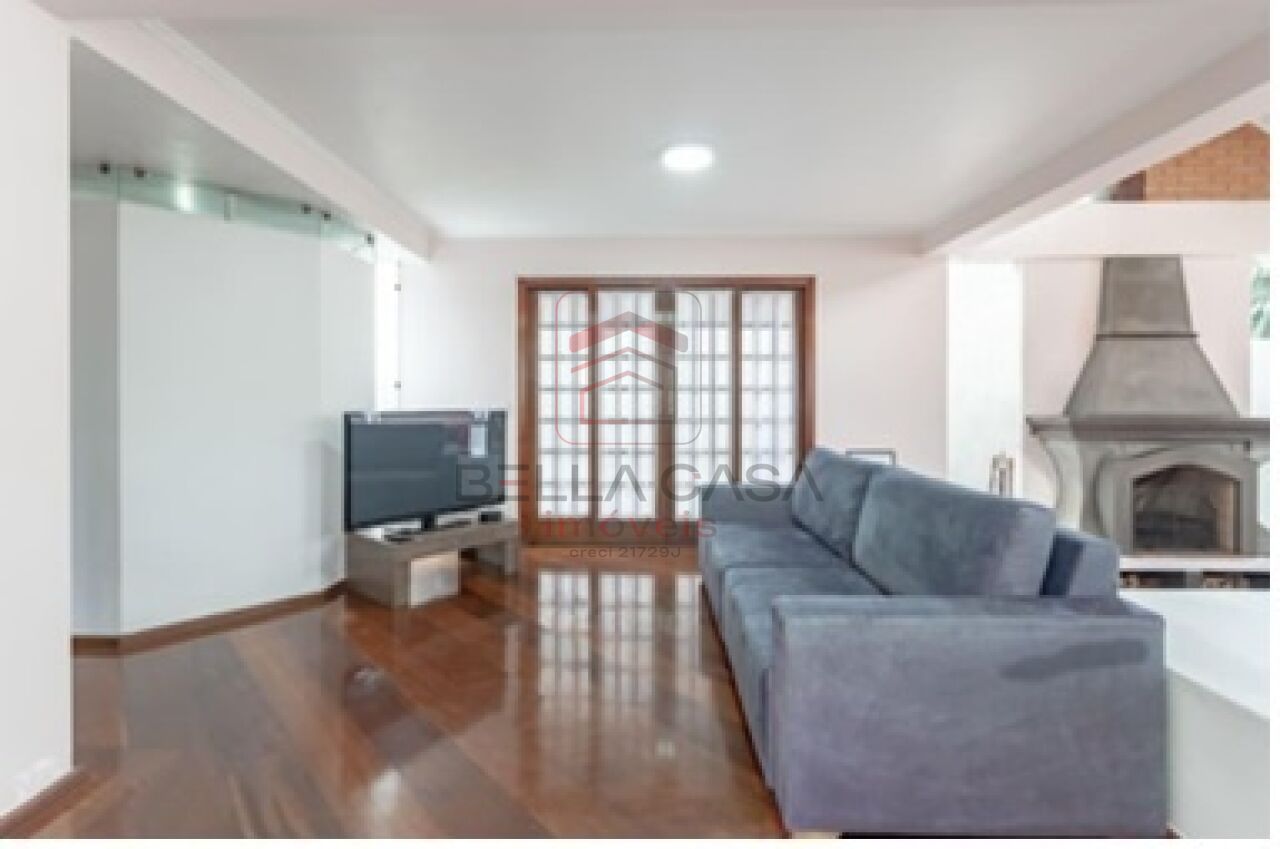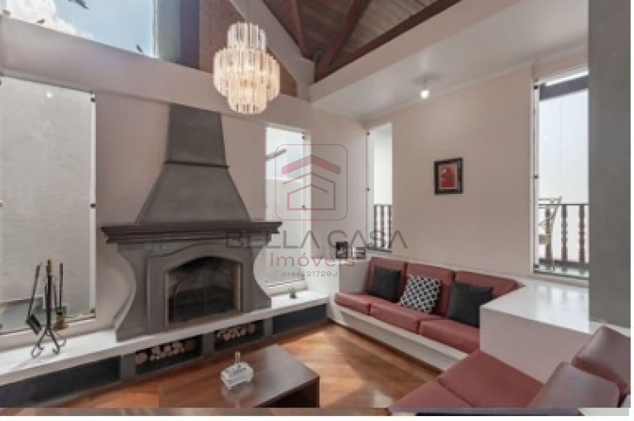 A casa conta com ampla sala com lareira, integrada a uma espaçosa copa-cozinha planejada, equipada com armários em toda a extensão, ilha central, espaço para mesa de 6 lugares, pia com duas cubas e despensa com prateleiras.