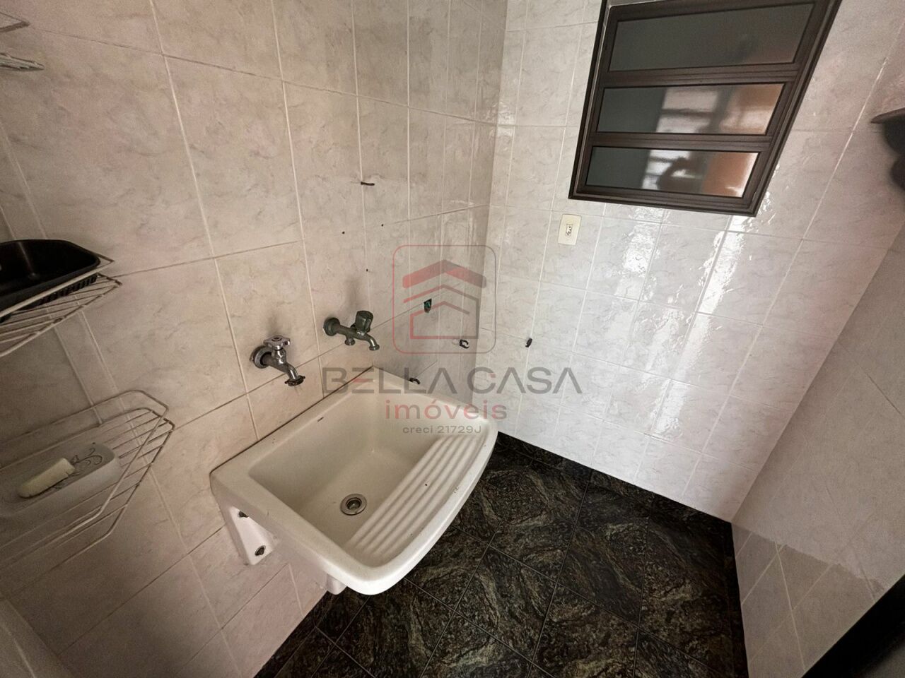 São 3 quartos ( todos suítes), sala para dois ambientes, 5 banheiros e garagem para 5 carros.