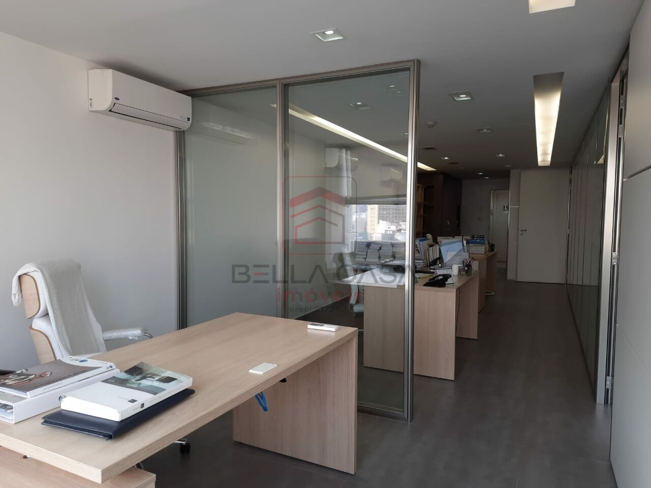 Sala comercial de aproximadamente 85 mts, recém reformada, elétrica com toda infra de mídia e telefonia, ar condicionadonas duas salas