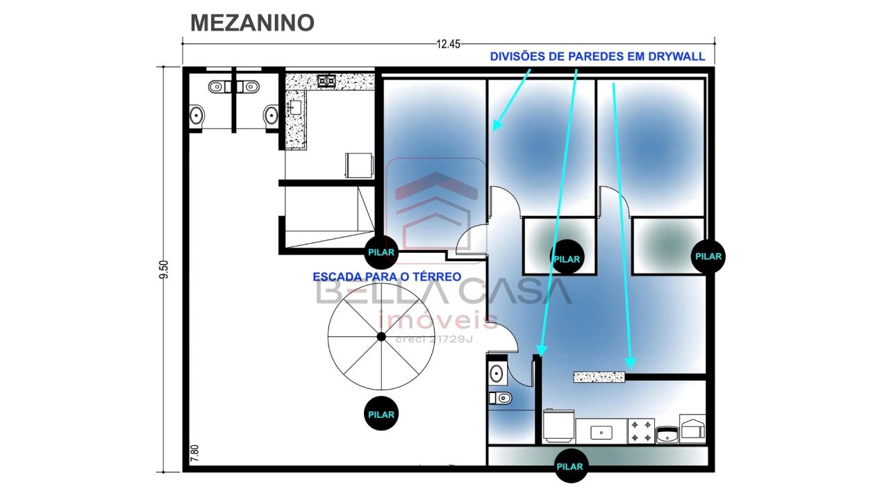 Imóvel com 270m² de área total, distribuído em 3 pavimentos, oferecendo um amplo salão livre com loja, mezanino, subsolo e 6 salas de escritório. Conta ainda com cozinha, copa e 3 banheiros, além de acabamento de qualidade com pisos em porcelanato, granito e cerâmica, e ar-condicionado instalado.