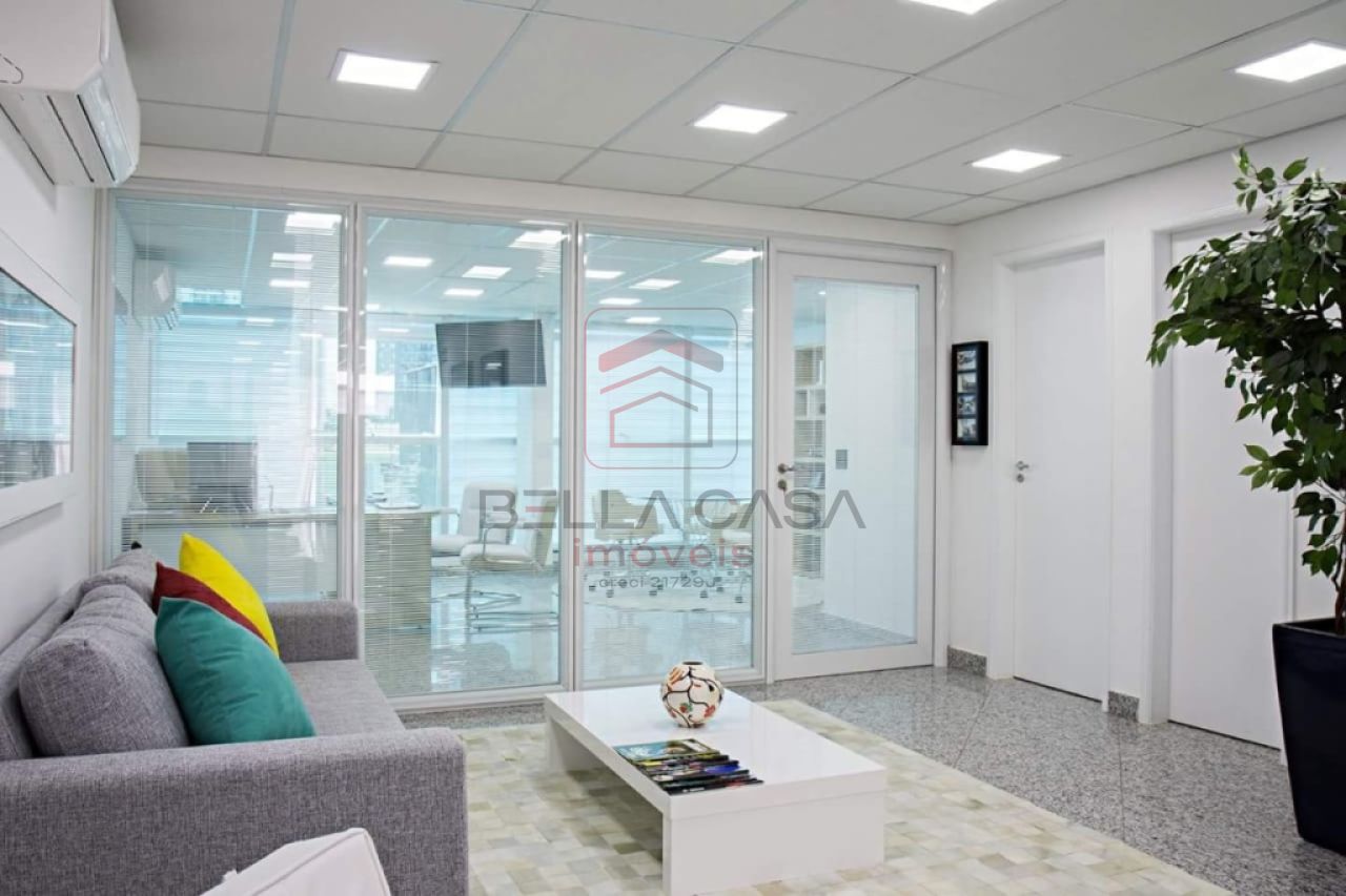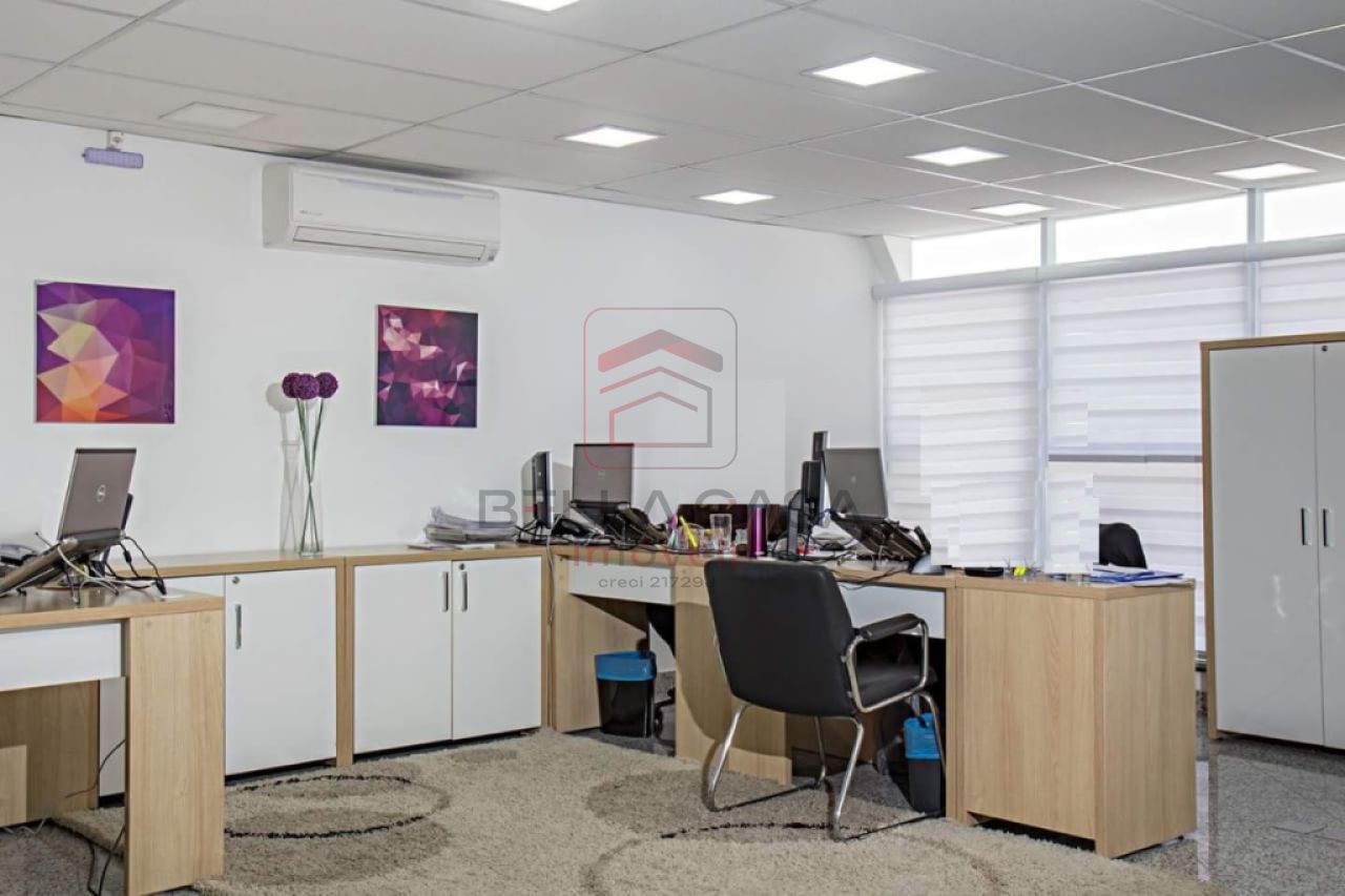 123,06 m² - Excelente sala comercial com ar condicionado, 3 banheiros, cozinha, divisórias com vidros, monitoramento, janelas com persianas, excelente iluminação, piso em granito.