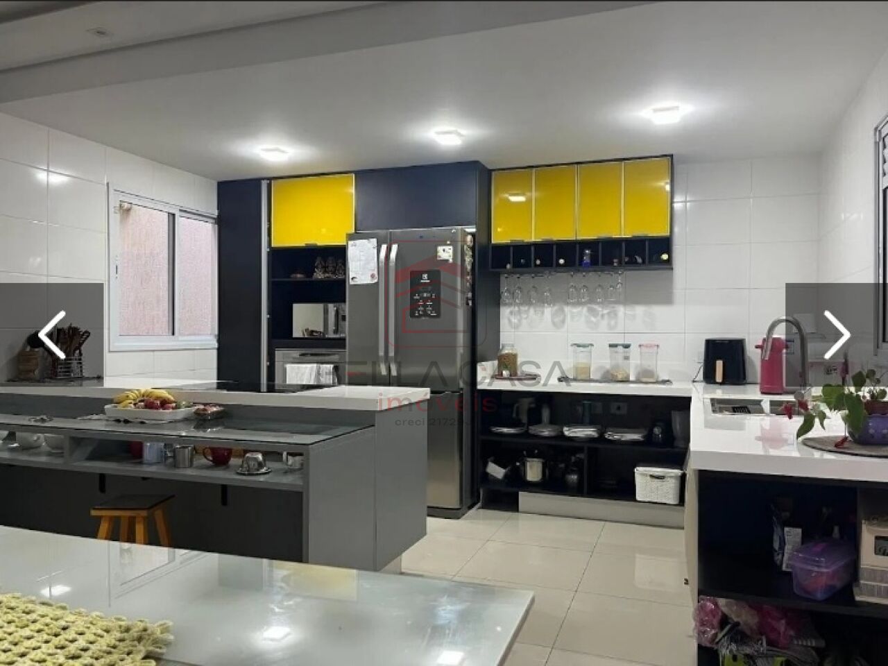 Tem porteiro eletrônico portão elétrico, alarme e câmeras com acesso remoto.