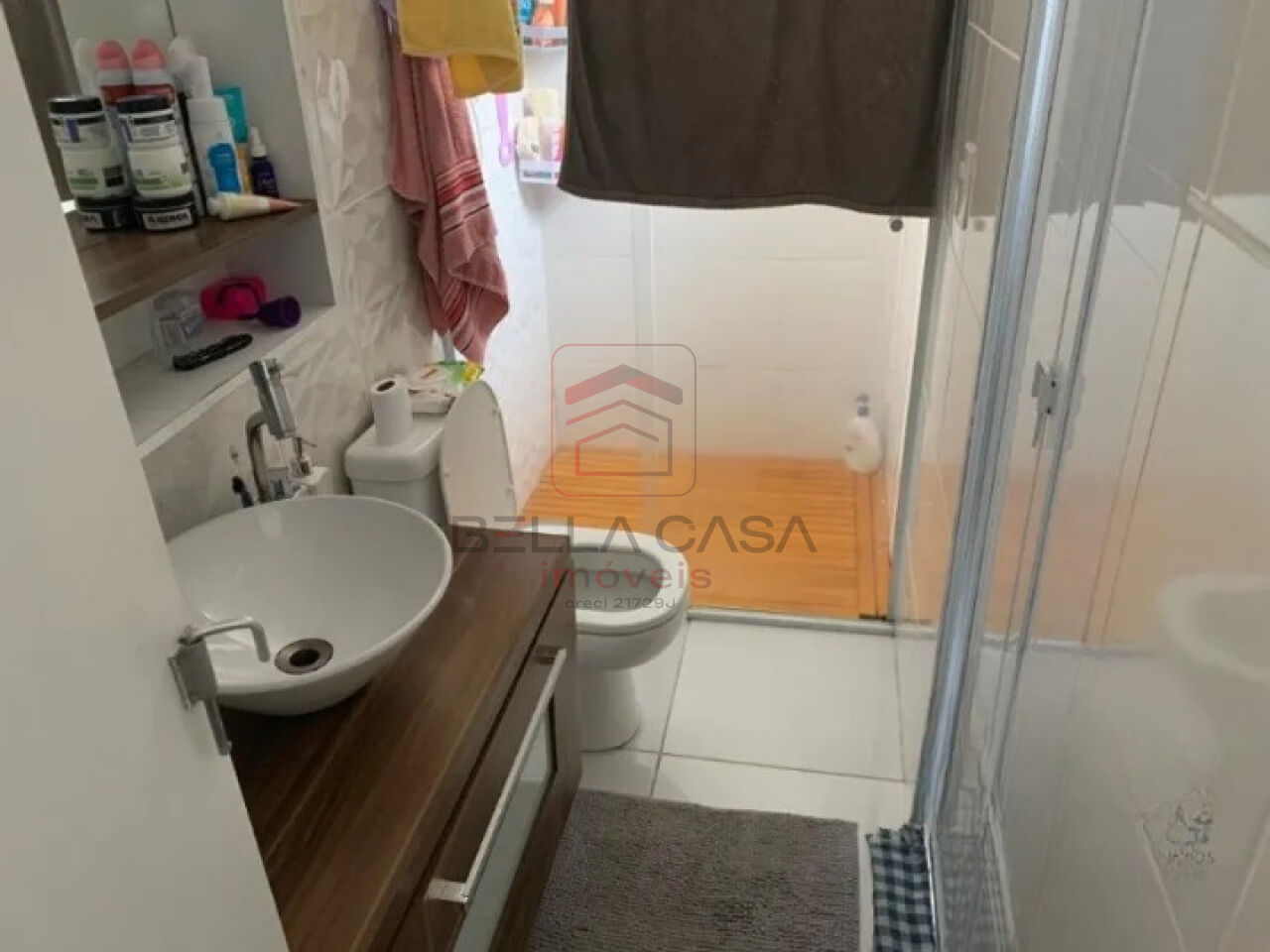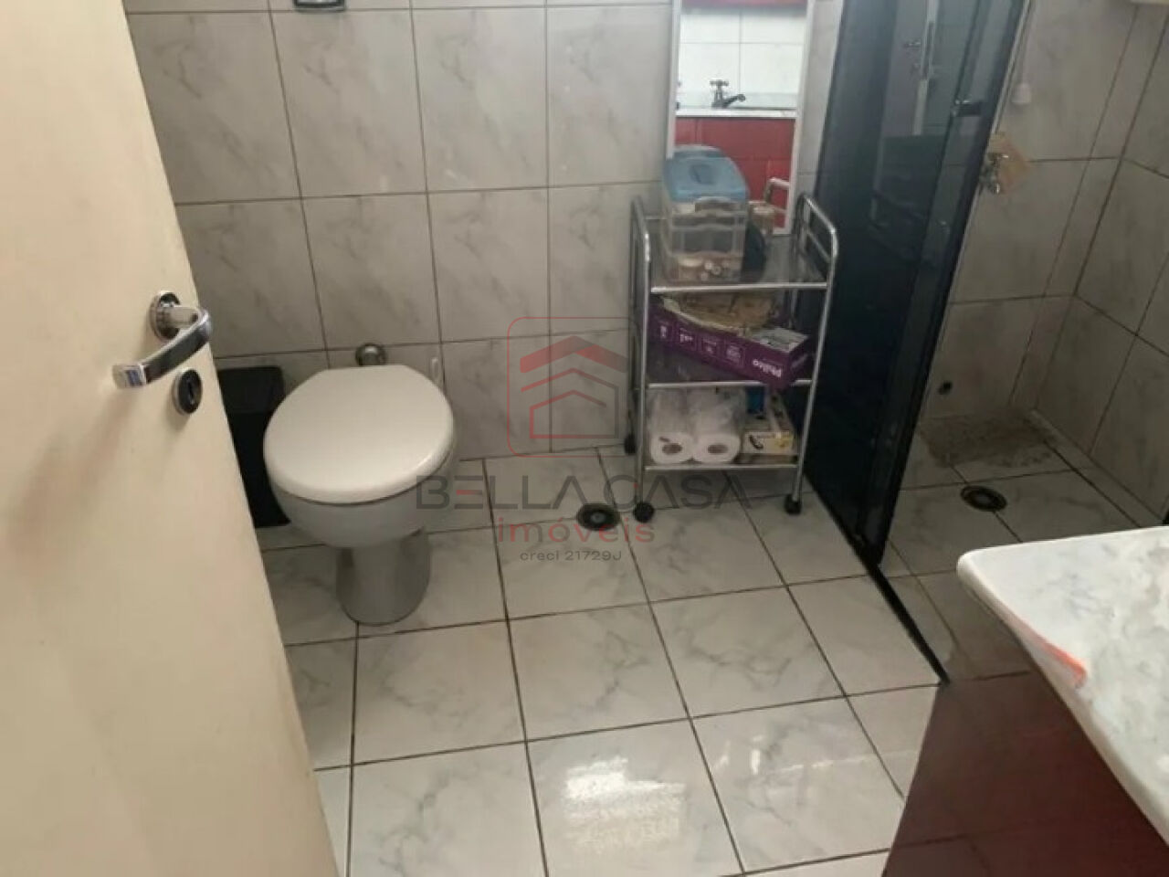 Banheiro com box e gabinete