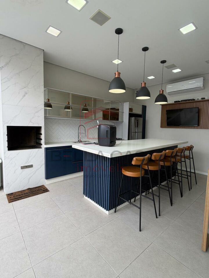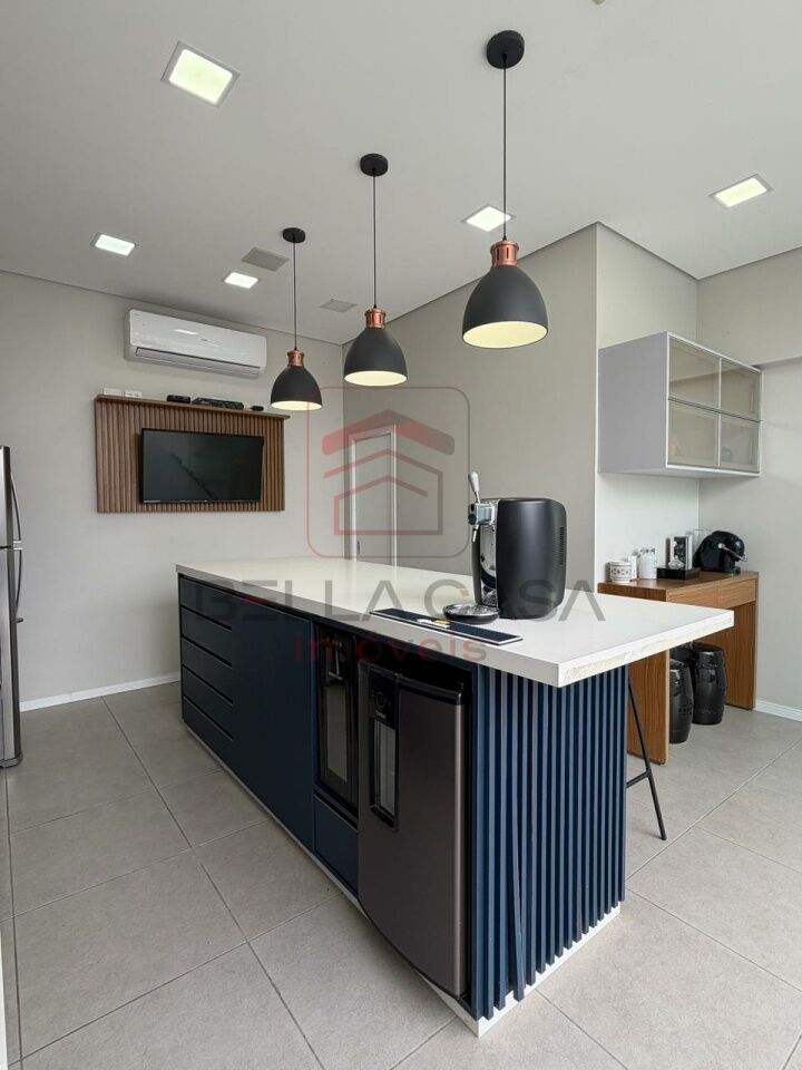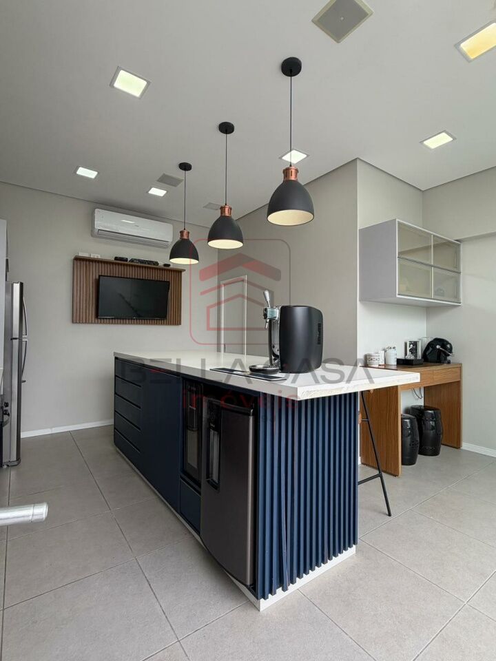 A área externa é um grande destaque: espaço completo para receber amigos e familiares, com piscina aquecida (equipada com timer automático para aspiração diária), churrasqueira, armários planejados, ilha central e ar-condicionado.
