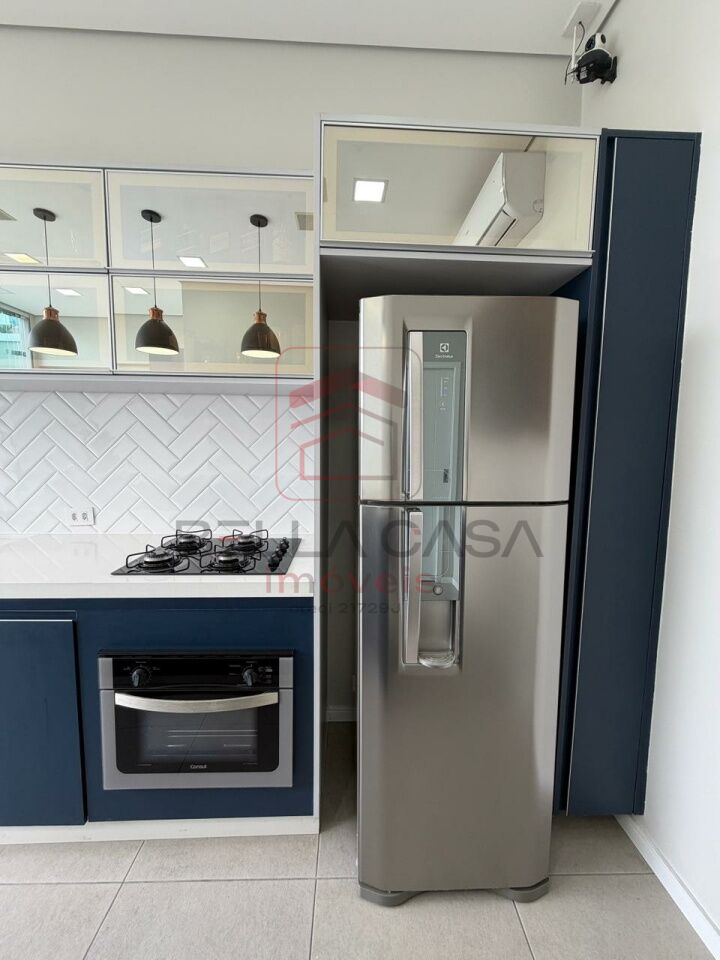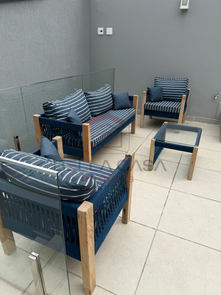 Na área interna, dispõe de uma ampla sala para dois ambientes (estar e jantar), equipada com ar-condicionado, além de uma cozinha planejada funcional e moderna.