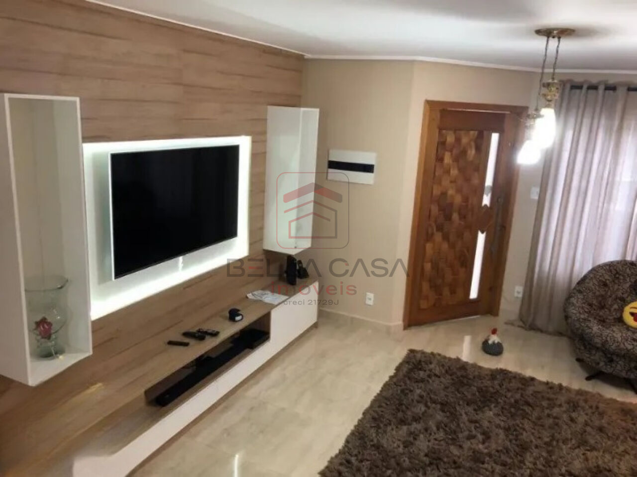 Sala ampla que pode acomodar um sofá de até 4 metros.